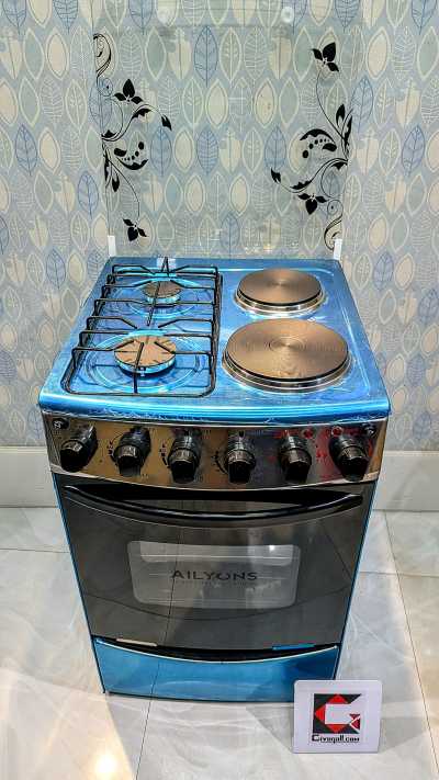Ailyons Jiko La Gesi Plet 2 Na Mbili Umeme Na Oven Ya Gesi Size 50 Kwa 55